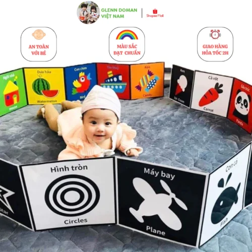 Thông qua hình ảnh và màu sắc sinh động, bé sẽ làm quen và ghi nhớ nhanh chóng các chữ cái và số đếm đầu đời.